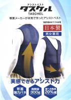 ベストタイプのアシストスーツです。背中のバネの反発を利用して腰や背筋の負担を軽減し重量物の持ち上げや長時間同一姿勢での作業をアシストします。