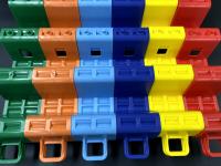 反復利用型の輪木(バタ角)です。取っ手がついているので手を挟みにくく安全性に優れています。軽くて持ち運びにも便利で、重ねてコンパクトに収納できます。カラーバリエーションも豊富(6色)です。