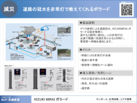 ゲリラ豪雨による道路冠水。KIZUIKIMIRAI ボラードは設定推移に 達すると瞬時に検知し、LED非常灯の 点滅で周囲に危険を知らせると同時に、 管理者へ情報を通知します