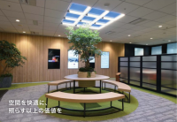 「misola」は室内に自然な青空と太陽光の差込感を再現いたします。また、日の出から夜までの空の色変化が可能で、一般的な照明と同等の厚さ120mm以下の薄型構造で、天井や壁への埋込施工が容易です。