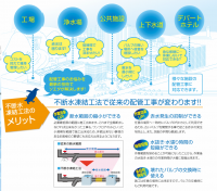 配管工事の時間短縮、コストダウンに! 不断水凍結工法で従来の配管工事が変わります!! 液体窒素で一時的に配管内の水を凍らせることで短時間での施工を可能にした工法です!