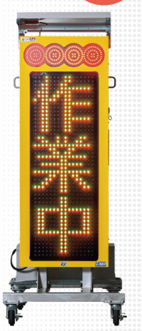 カラー標示機に関して消費電力は変えず、高輝度化を実現しました。 いち早く注意喚起情報を認識いただけます。 またWi-Fi機能により、タブレット、スマートフォン等から文字設定、任意の文字作成も行えます。