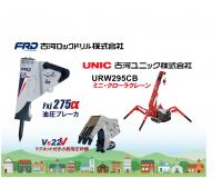 ①スルーボルトレス油圧ブレーカFxj275α②マグネット付小割圧砕機Vs22-VM③バッテリー式ミニクローラクレーンURW295CB